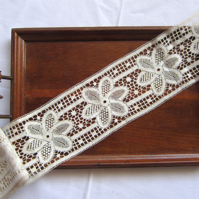 【巾11.5×100cmカット】麻フィレレース 花柄 フランスアンティーク