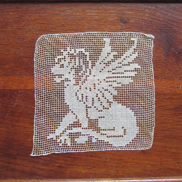 フィレレースモチーフ ライオン 麻 フランスアンティーク