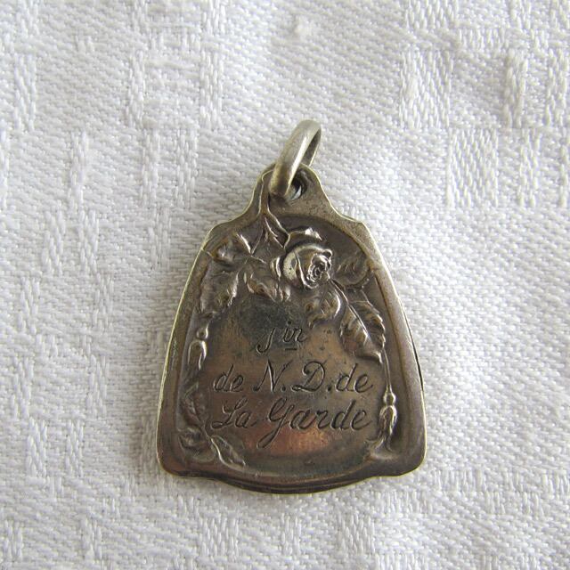ベル型に聖母子、裏は綺麗なローズガーランドにSur de N.D de la gardeの文字入り