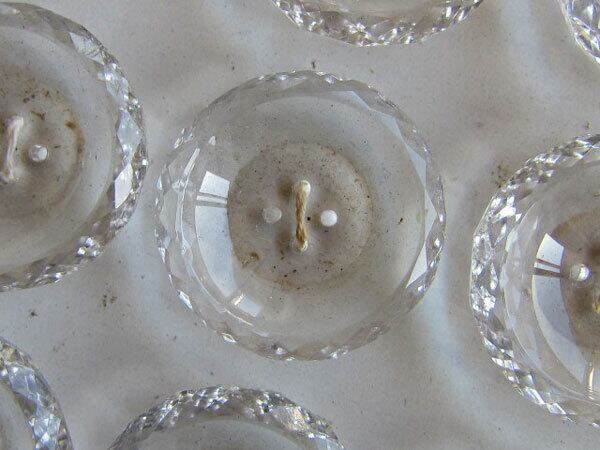 縁が綺麗な多角カットになっている大きなクリスタルガラスのようなボタン