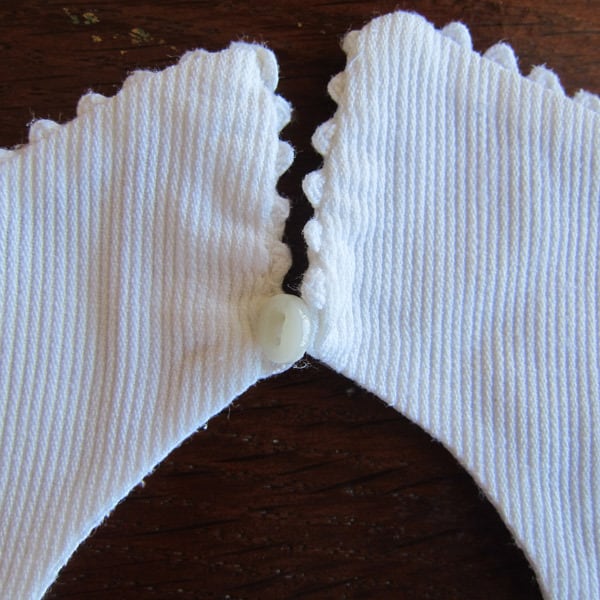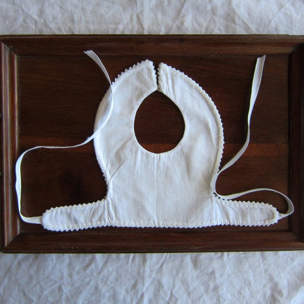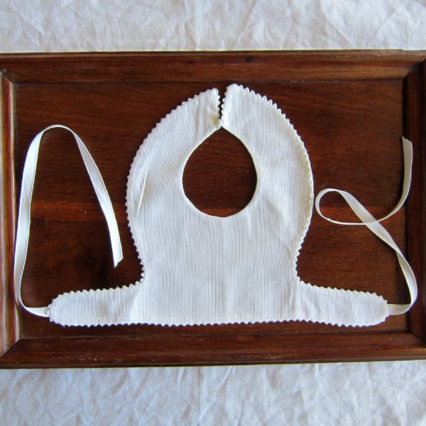 パリのアンティーク市で見つけた白ストライプコットンピケのベビースタイ