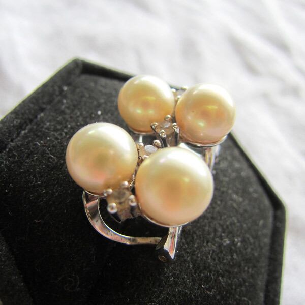 パリのアンティーク市で見つけたシルバー台に8mm玉パールが縦に並んだクリップ式イヤリング