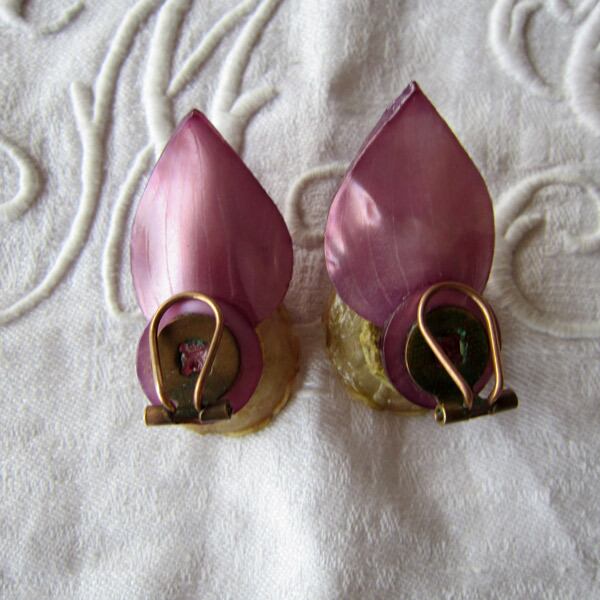 ■フランスヴィンテージ 花 イヤリング レトロ ポピー