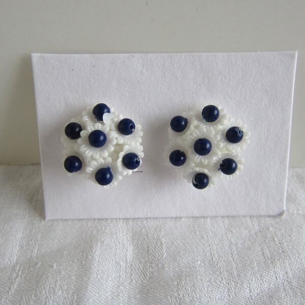 パリのアンティーク市で見つけたドイツ製60~70年代の小花マーガレット7個付いたフラワーイヤリング