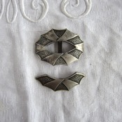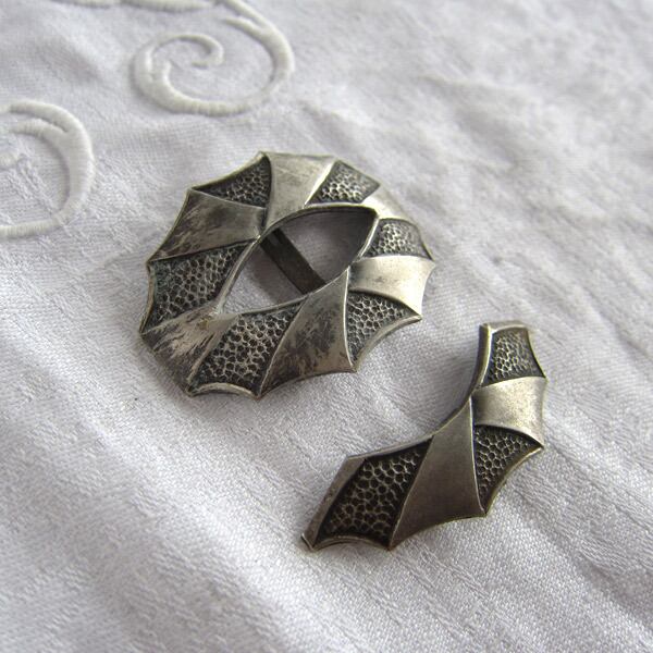 パリのアンティーク市で見つけたアールデコ柄ベルトバックルとシュークリップの2点