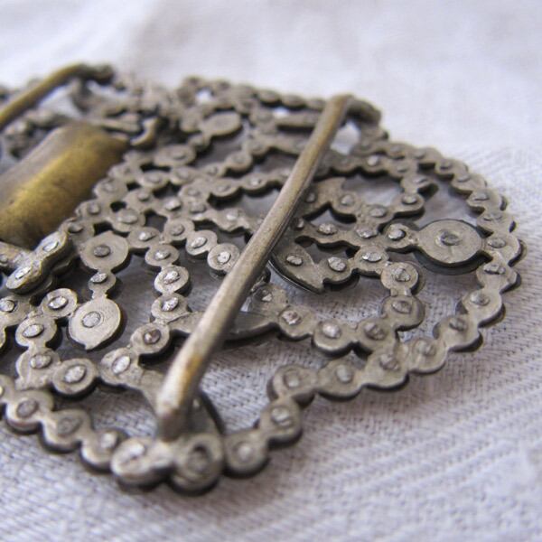 パリのアンティーク市で見つけたいろんな種類のカットスチールが花模様に並んだベルトバックル