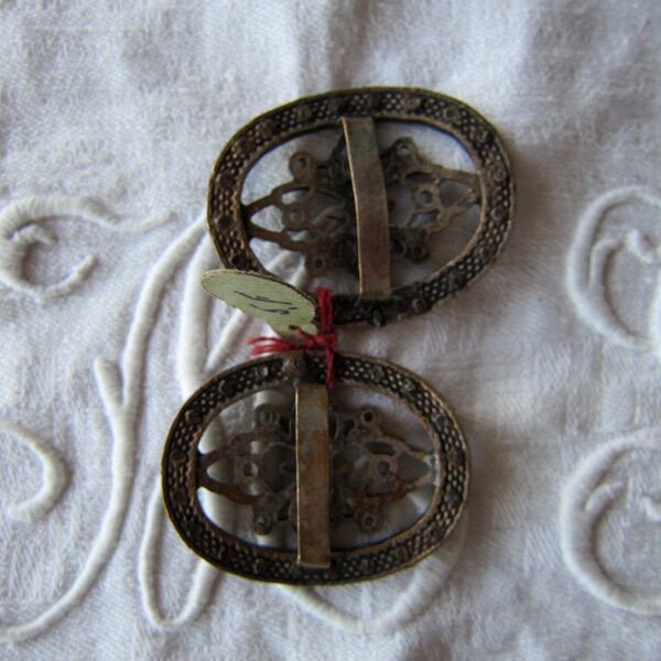 パリのアンティーク市で見つけたスチールカットが付いた真鍮製のベルトバックル2個組
