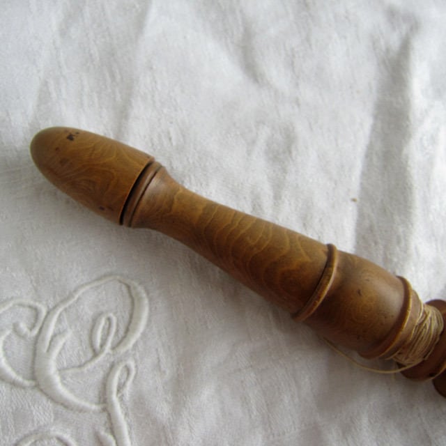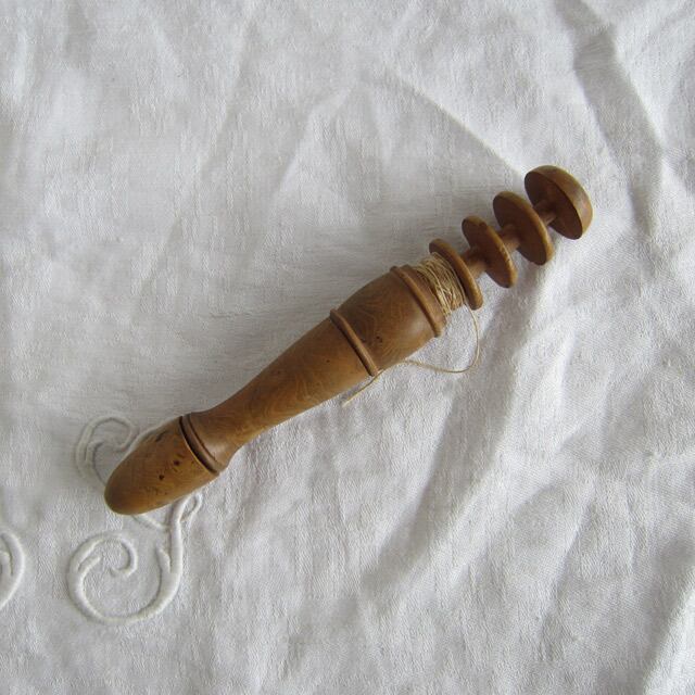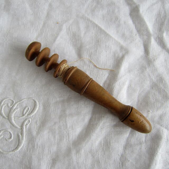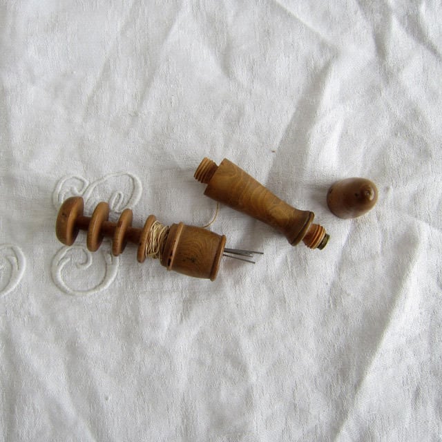 パリのアンティーク市で見つけた古い木製ボビン付ニードルケース