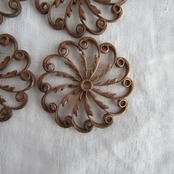 パリのアンティーク市で見つけた真鍮製赤銅色ラインがが渦巻模様のスカラップ型クラフト素材1個
