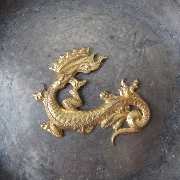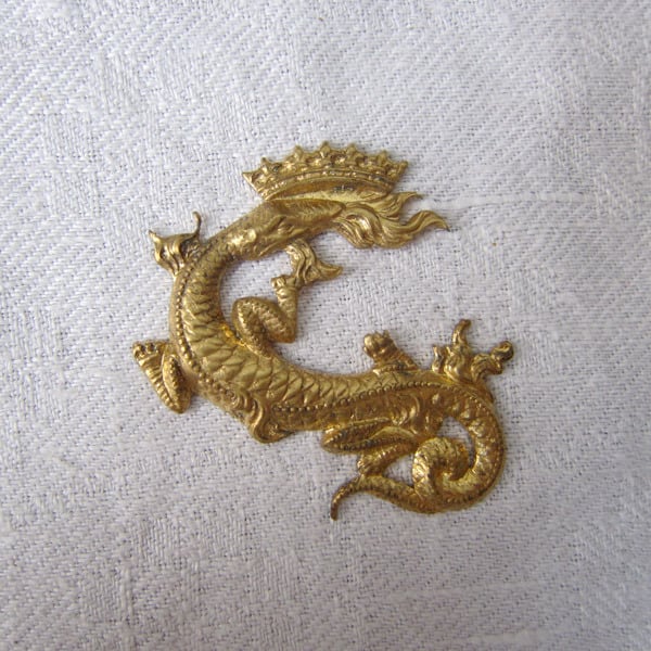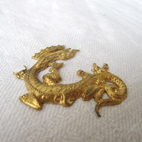 王冠とトカゲ 紋章 クラフト 真鍮パーツ フランスヴィンテージ