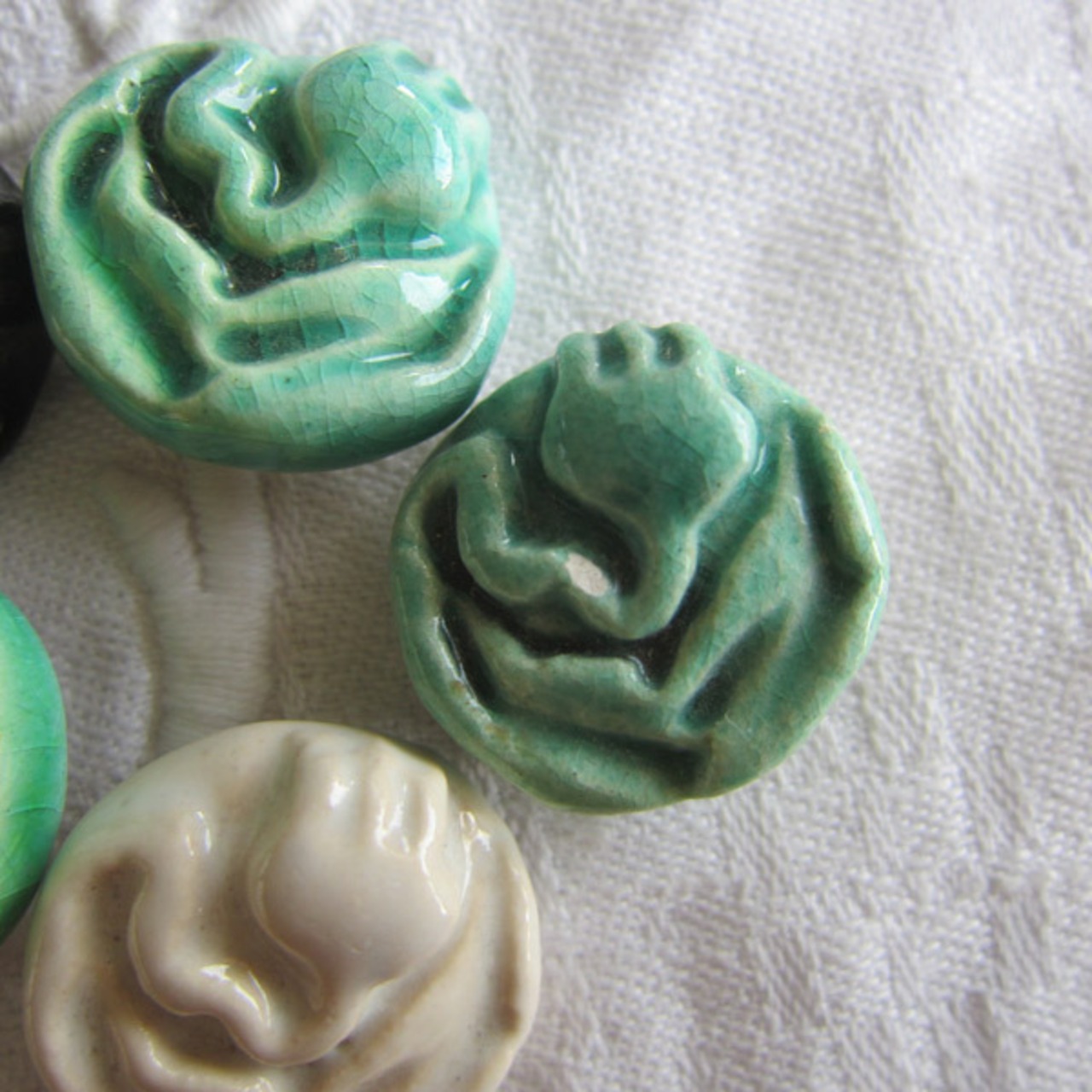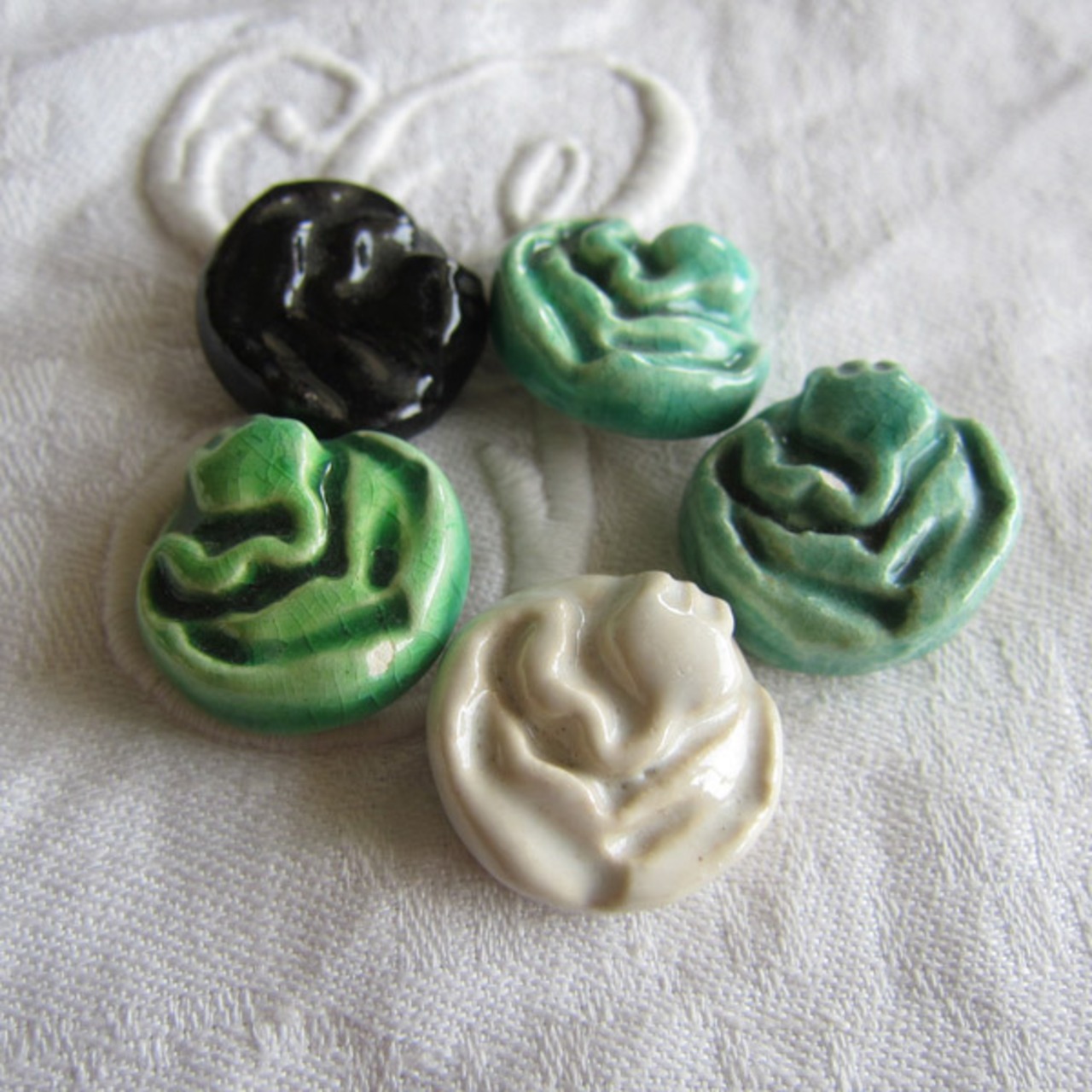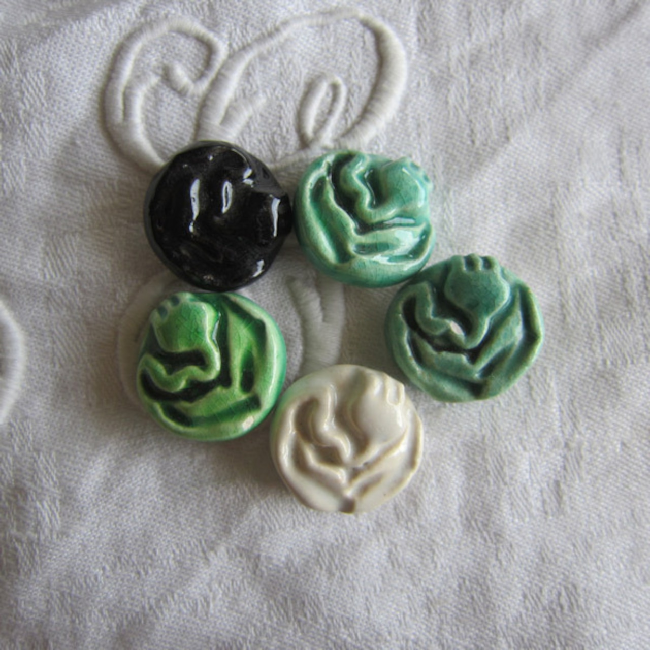 パリおブロカントで見つけた1960~70年代ぐらいのハンドメイドの陶器ボタン5個セット