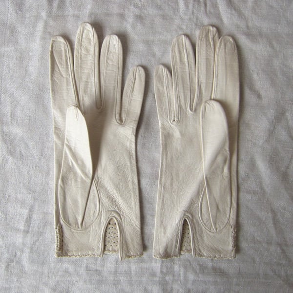 パリのアンティーク市で見つけた手首に編み柄が入ったChristian Diorホワイトの柔らかい1枚革手袋