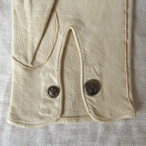 フランスアンティーク 革手袋 花ドットボタン ヴィンテージ ホワイト