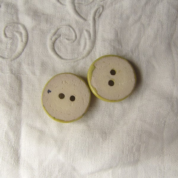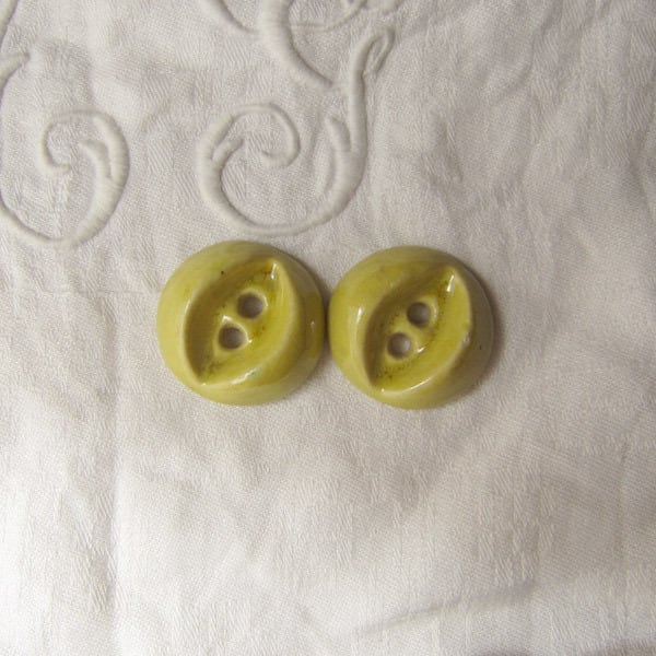 ≪28mm2個≫陶器ボタン 猫目 イエロー フランスヴィンテージ