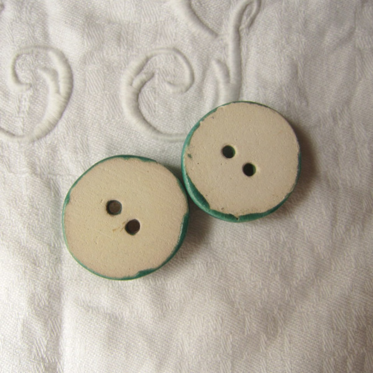 パリのブロカントで見つけた1960〜70年代ぐらいのハンドメイドの猫目デザイン陶器ボタン2個