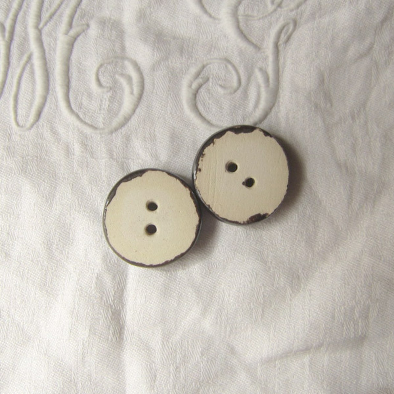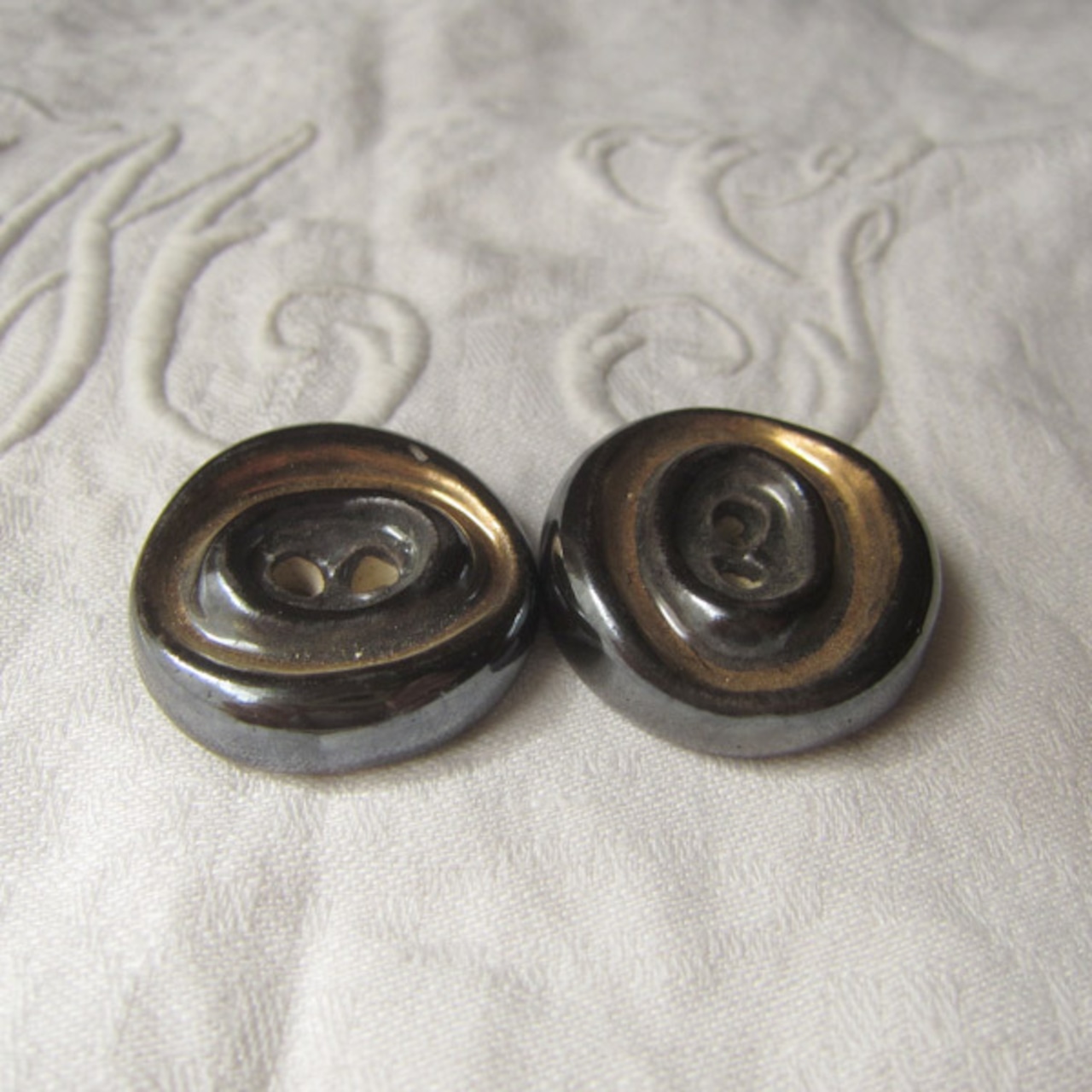 パリのブロカントで見つけた1960〜70年代ぐらいのハンドメイドの陶器ボタン2個