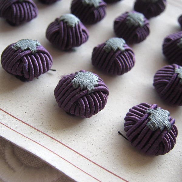 パリのアンティーク市で見つけたコード糸を巻いた上にさらに刺繍糸でアクセントをつけたコロンとしたハンドメイドのpassementerie(パンスモンテリー)ボタン6個セット