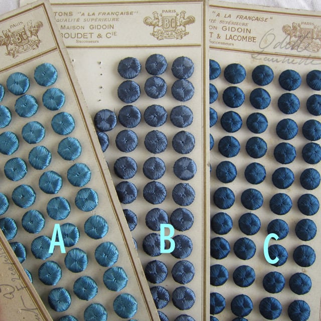 パリのアンティーク市で見つけたシルク糸で包まれたハンドメイドボタン12個
