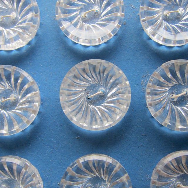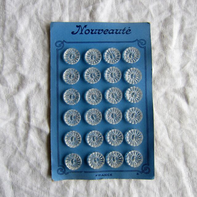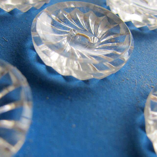パリのブロカントで見つけたクリアガラス釦にみえる透明ボタン6個