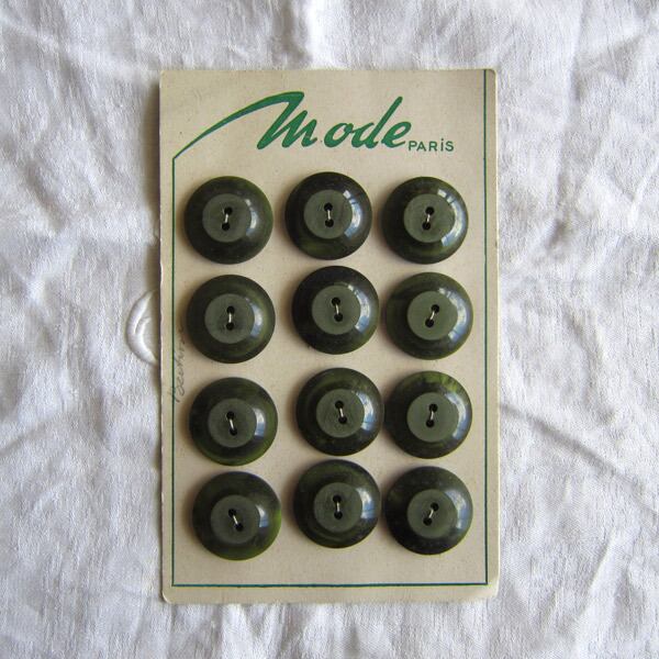 パリのブロカントで見つけたオリーブグリーン色29mmボタン2個