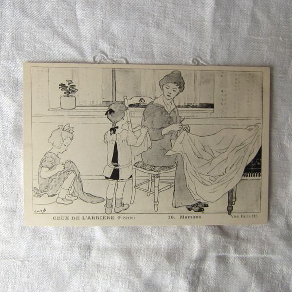 フランスアンティーク ポストカード 子供と母 1914~18年 ヴィンテージ