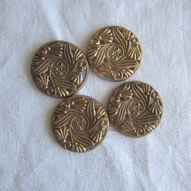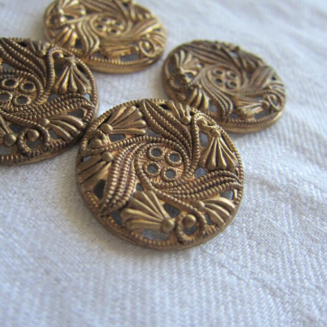 パリのブロカントで見つけたアールヌーヴォー花柄真鍮製のボタン2個セット。