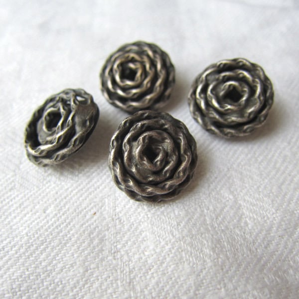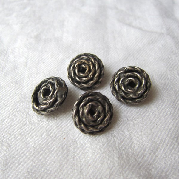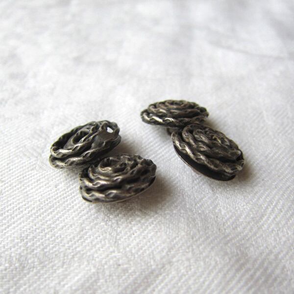 パリのブロカントで見つけたねじりロープをクルクル巻いたデザインがお花のように見える16mm釦2個セット。