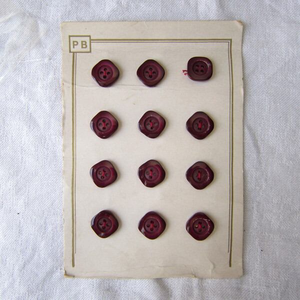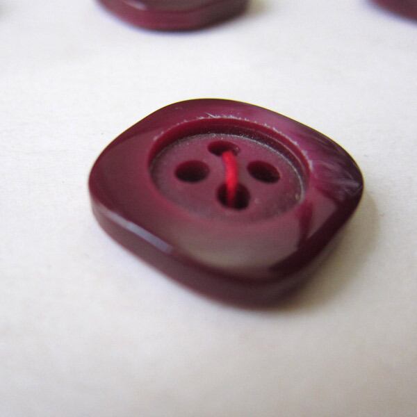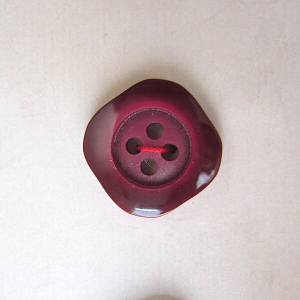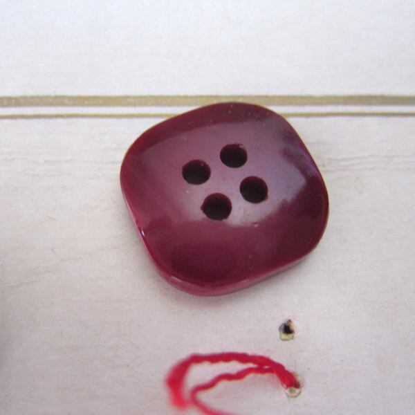 パリのブロカントで見つけたボルドーカラーの4つ穴四角ボタン6個