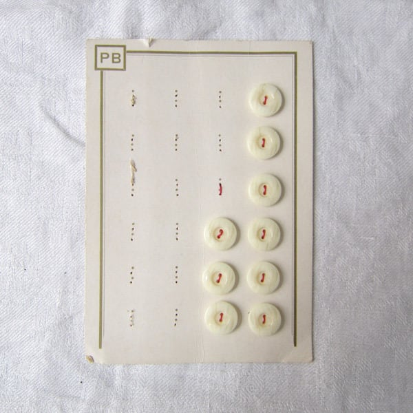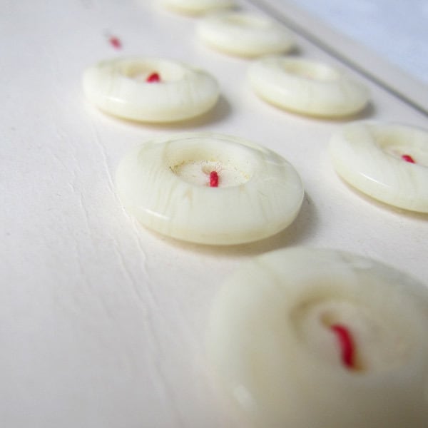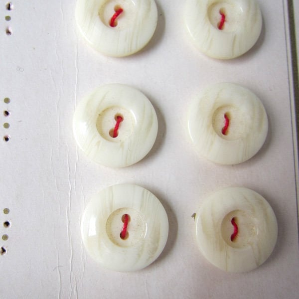 パリのブロカントで見つけ二つ穴マーブル柄のアイボリー色ボタン9個