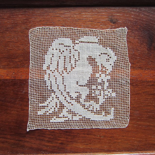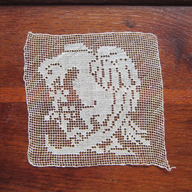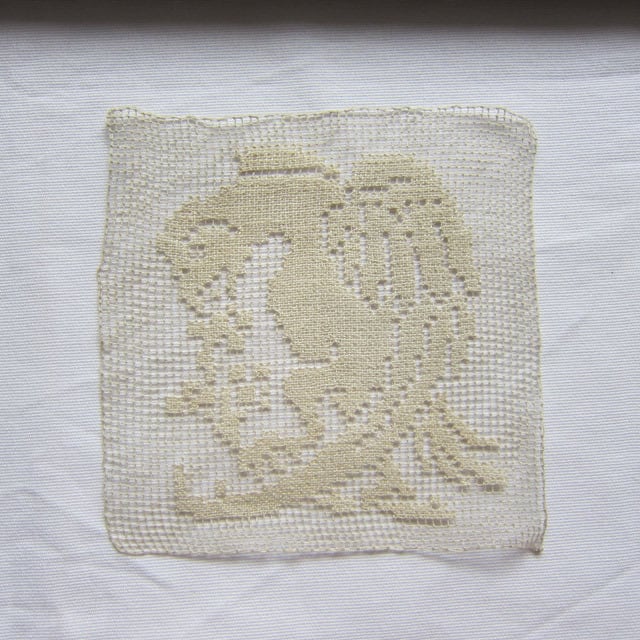フィレレースモチーフ カーゴイル鳥 リネン製 フランスアンティーク
