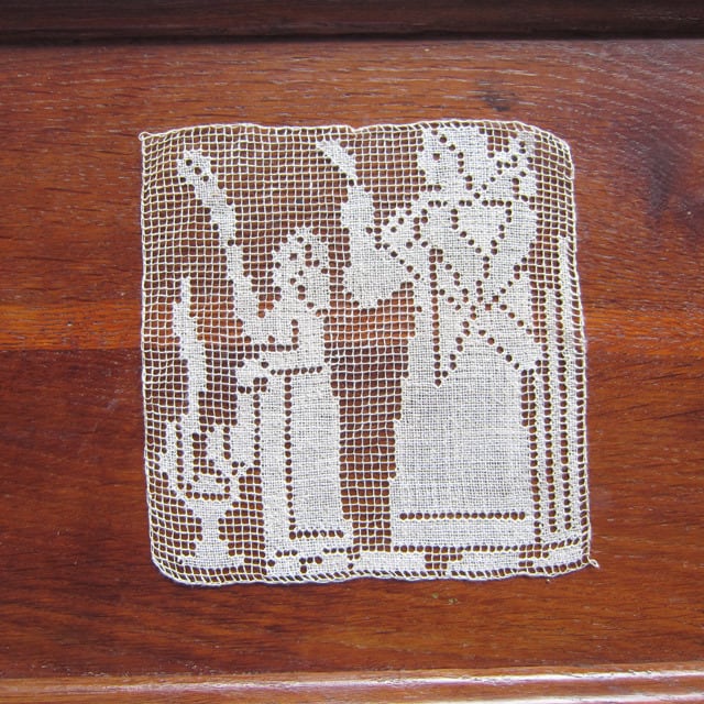フランスアンティーク 麻フィレレース モチーフ 弓矢