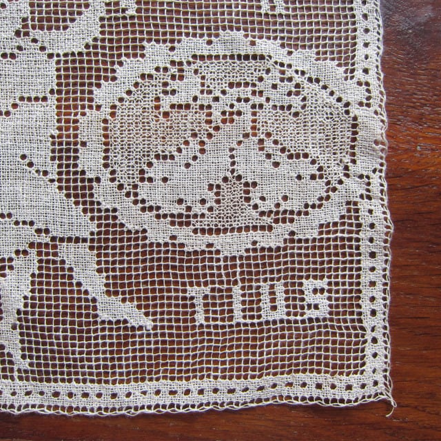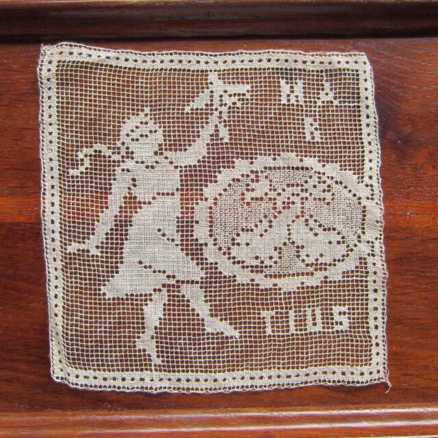 フランスアンティーク 麻フィレレース モチーフ 3月うお座