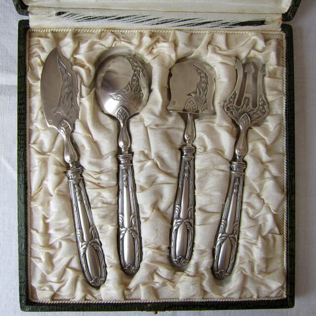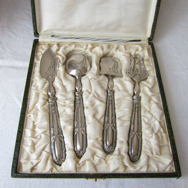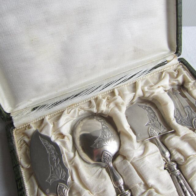 フランスアンティーク オードブル サービングセット サーバー すずらん柄 ケース箱付