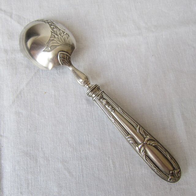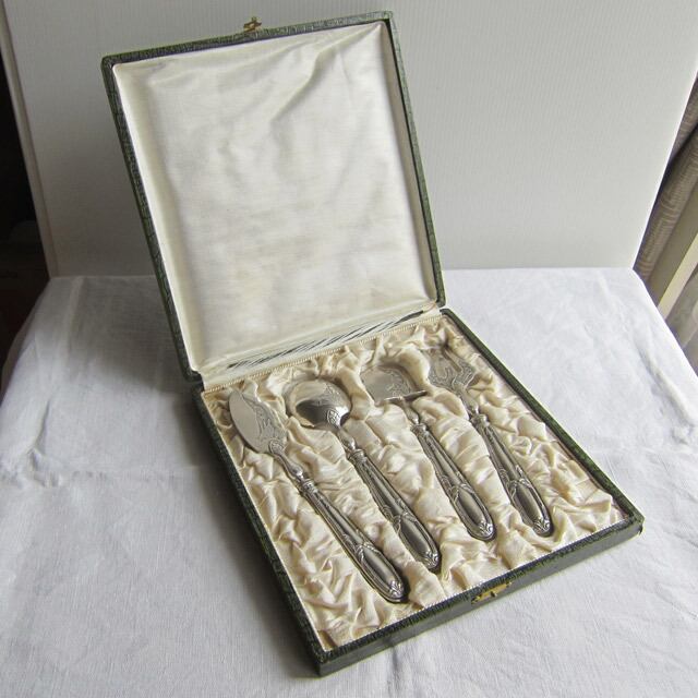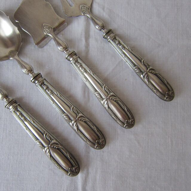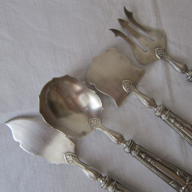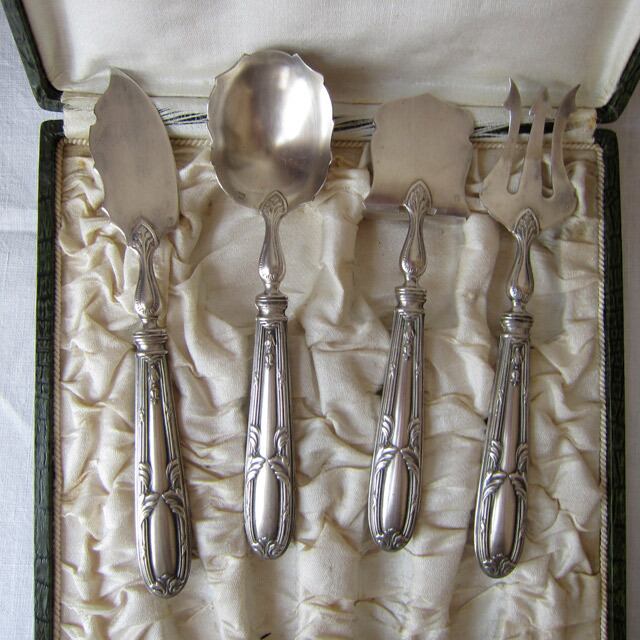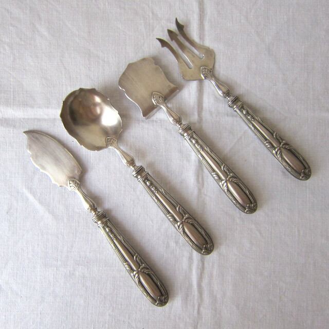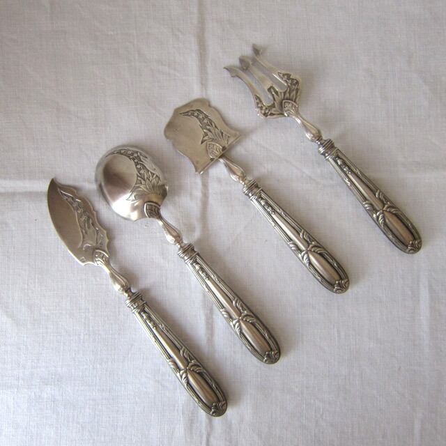 パリのアンティーク市で見つけた鈴蘭の素敵な装飾が施されたアンティークのシルバープレート製オードブルサービング4点セット