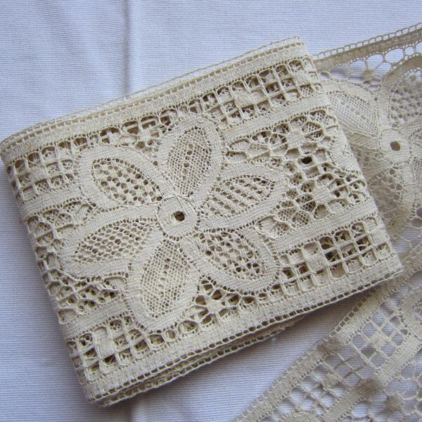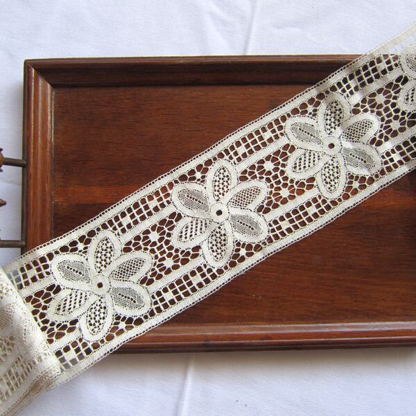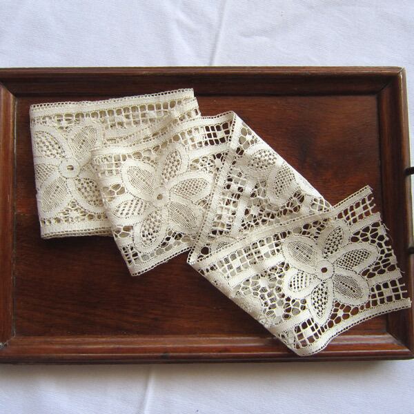 パリのアンティーク市で見つけた大きなお花モチーフが並んだ素敵なニードルレース110cm