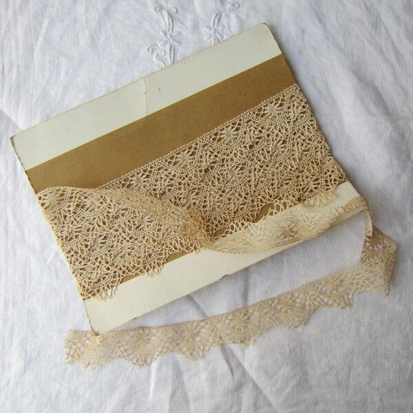 パリのアンティーク市で見つけた生成り色リネン製ボビンレース100cmカット