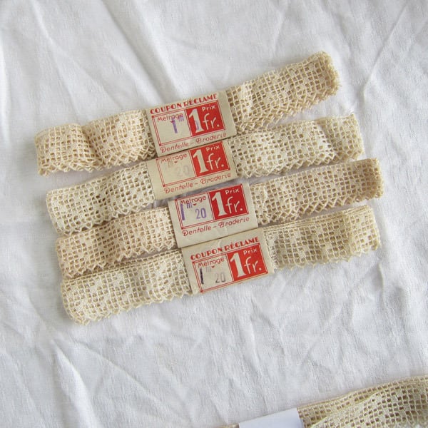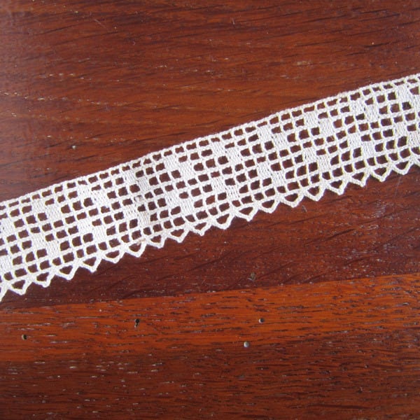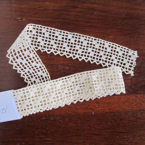 パリのアンティーク市で見つけた巾2.5cmの四角模様のボビンレース120cmカットになったデッドストック品クーポン