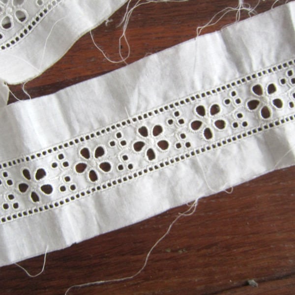 【刺繍巾2.5cm×77cm】花アイレットレース コットン フランスアンティーク ヴィンテージ