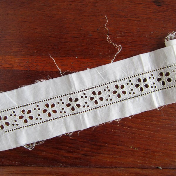 パリの蚤の市で見つけたアイレット花刺繍が入ったコットンレース