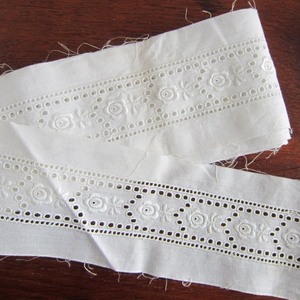 【刺繍巾3cm×100cmカット】アイレットレース コットン フランスアンティーク ヴィンテージ