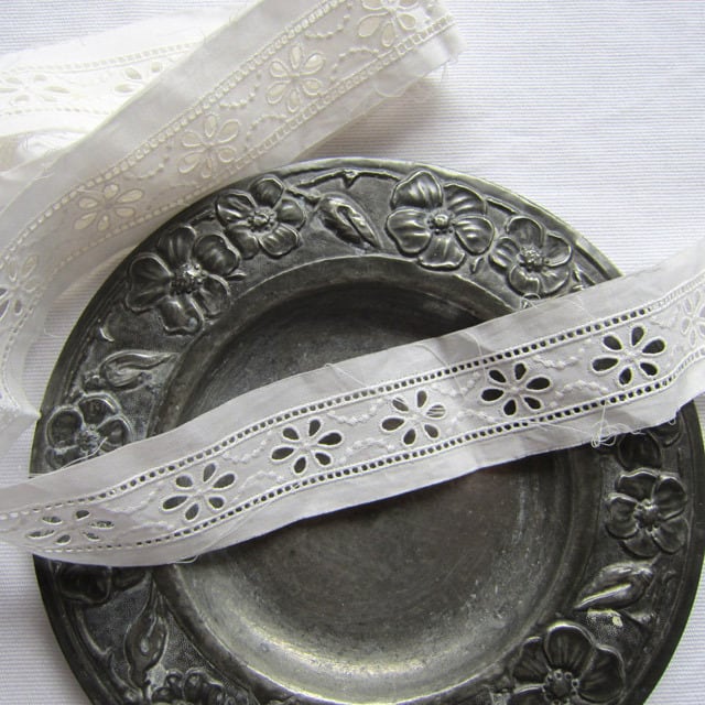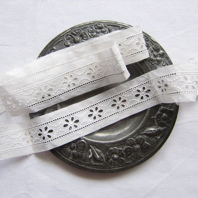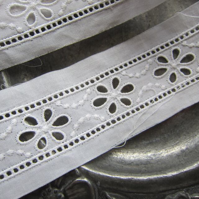パリの蚤の市で見つけたアイレット刺繍が入ったコットンレース