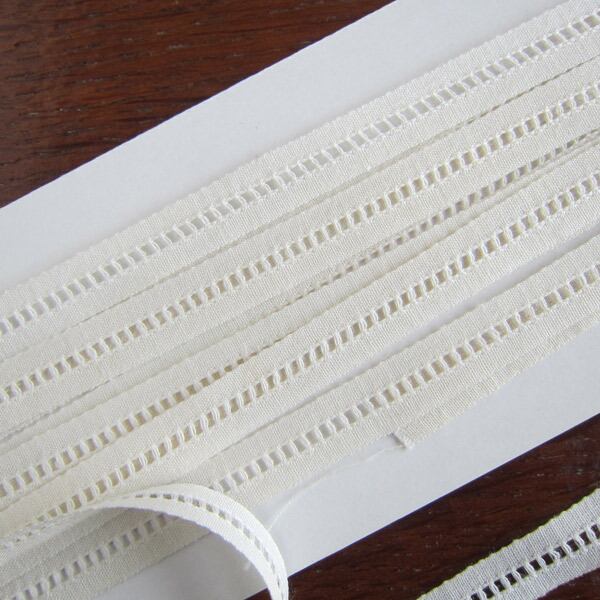 パリの蚤の市で見つけた細巾コットンテープにアイレット刺繍が入ったテープ370cm