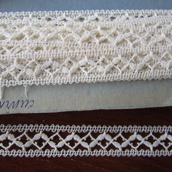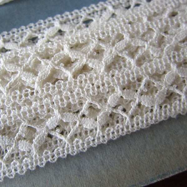 パリのアンティーク市で見つけたホワイトカラー巾1.6cmのボビンレース
