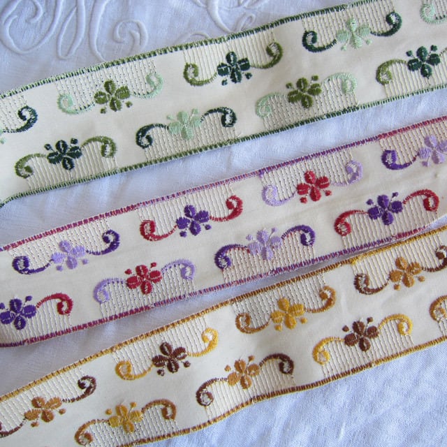 パリ蚤の市で見つけたヴィンテージ5cm巾刺繍テープ1mカット