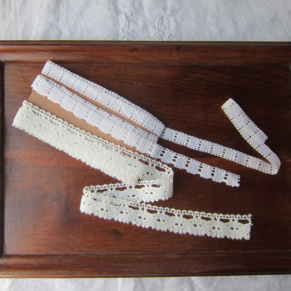 【巾1.2~2.5cm3種320cm】トリム コットンテープ ホワイト フランスヴィンテージ