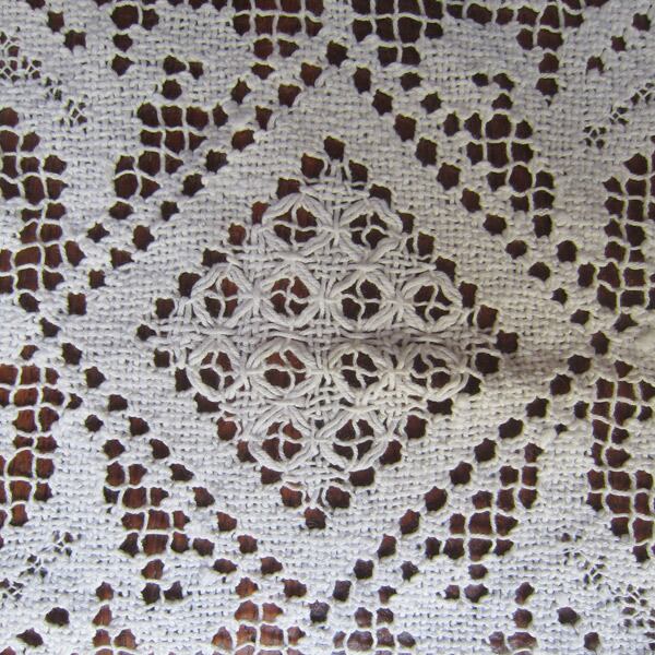 フィレレースより粗い編目に模様が入ったイタリアのタスカニー地方のレースの様です