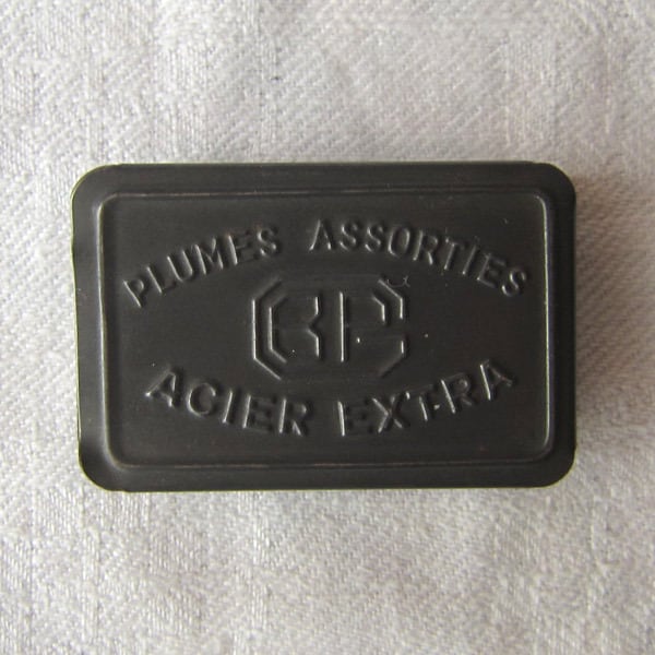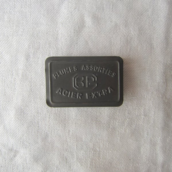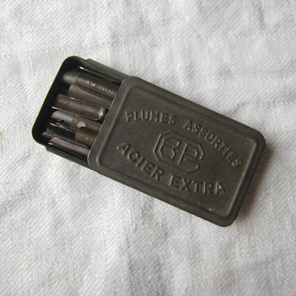 フランスアンティーク ペン先20本 ティン缶 スライド式Blanzy-Poure