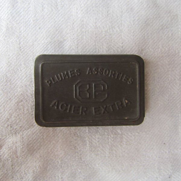 フランスアンティーク ペン先30本 ティン缶 スライド式 Blanzy-Poure