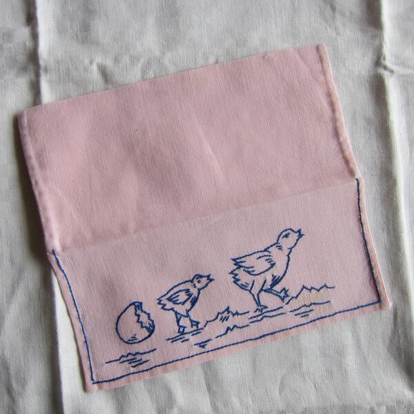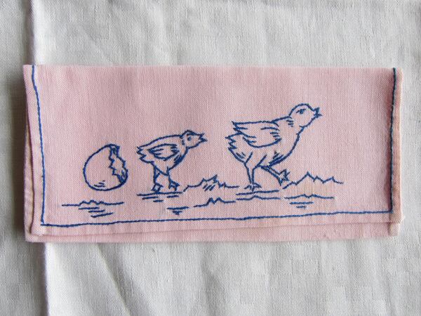 フランスヴィンテージ ひよこ タマゴ 手刺繍 ナプキンケース 麻リネン 小物入