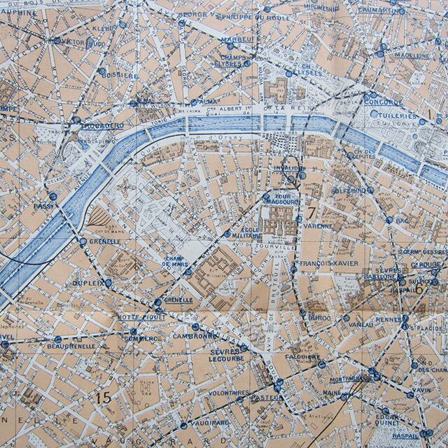 フランスブロカントで見つけた古いパリの地図付paris市内の通り字引